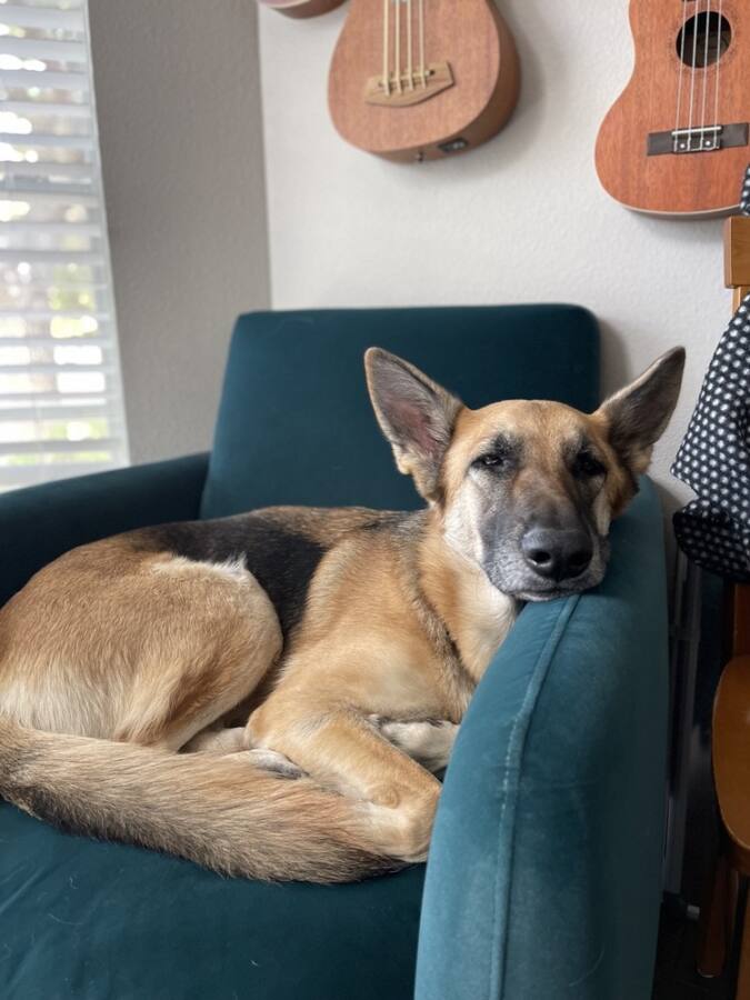 Hi! I'm Coco! I'm also Kokomo, Momo and Silly Girl. Let's see... about me... Well, I'm a German Shepherd, like all the way. I love my people and love to follow them around in case they need help. I love learning. And I love playing ball. That's actually one of my favorites, playing ball. I like to drop balls at your feet just in case you want to play too! Going on walks and car rides are fun too. They have some dog friends at my foster home I play with, they're young and goofy and we have fun. I'm house trained, crate trained, and know all my basic commands. Cats are cool too, but I do enjoy the random squirrel chase.