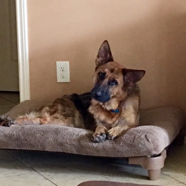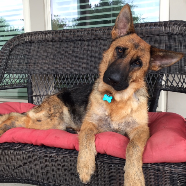 Before I tell you about Bristol, I want to share with you her rescue story. She was a stray who found her way into a local shelter. When I first saw her, and the poor condition of her body, I cried. Bristol had a serious case of demodex mange and her skin was full of infection. By the time I saw her at the shelter, she had lost a lot of fur and her skin had many open sores. But, in spite of how much pain she felt, Bristol greeted me with tail wags and doggie kisses. She was so excited to play with me, and I was totally engulfed in her magic. As we left the shelter, I told her I would be her foster and nurse her back to good health. The shelter employees were so glad I pulled Bristol and said she is one of the sweetest German Shepherds they have seen. And, she is!!